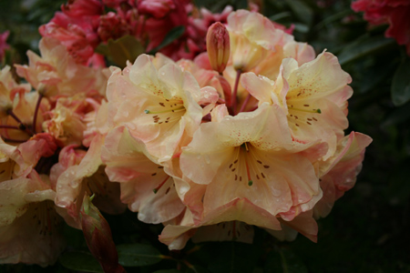 Contact us for the price of this grade. Mid season (['Azor' x 'Francis Hanger'] x 'Lem's Cameo') Creamy yellow, flushed pink wavy edged florets in rounded truss. Good foliage.