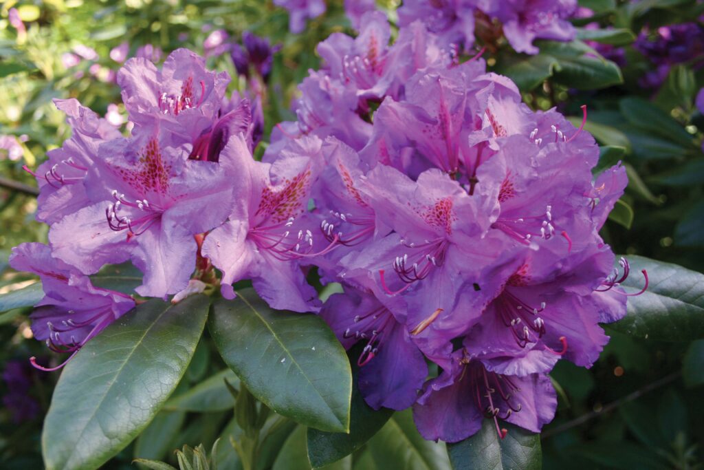 Late. 1.2m (catawbiense x unknown) Good strong growth habit, with dark waxy foliage. The royal purple flowers form a compact truss.