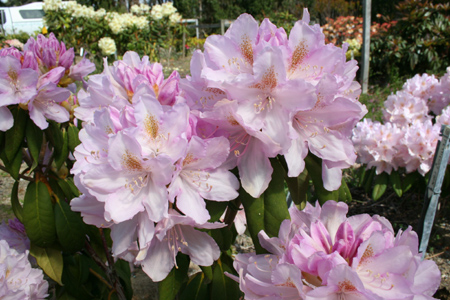 Late mid season 1.2m Mauve pink flowers with distinct yellow spotting. Round trusses.