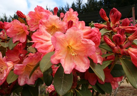 Mid season. 1.2m ('Dido' x 'Fawn') Rich pinkish-orange flowers, one of the deeper, in this toning. Compact plant wider than tall. Free flowering. Nice foliage.